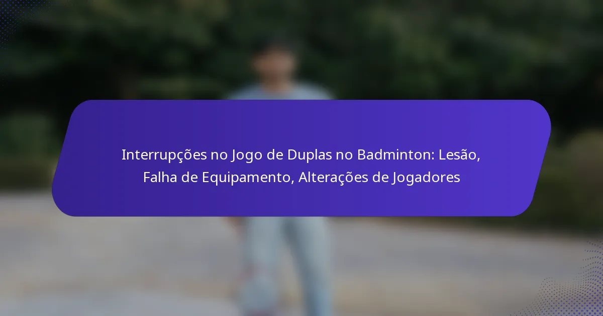 No badminton em duplas, interrupções podem surgir de lesões, falhas de equipamento ou mudanças de jogadores. Cada tipo afeta o fluxo do jogo e requer protocolos específicos para uma gestão eficaz.