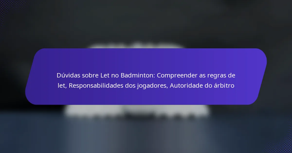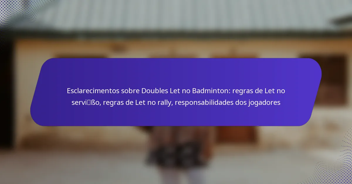 No badminton em pares, um let ocorre quando um rally é interrompido e refeito devido a circunstâncias específicas, tornando essencial que jogadores e árbitros compreendam as regras do let para um jogo justo. Os jogadores devem estar cientes das suas responsabilidades durante um let, incluindo reconhecer a situação, comunicar-se com o seu parceiro e o árbitro, e adaptar a sua estratégia. Os árbitros têm a autoridade para interpretar as regras e tomar decisões finais sobre chamadas de let, influenciando significativamente o fluxo do jogo e as táticas dos jogadores.