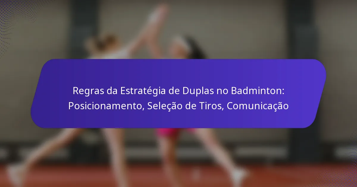 Melhorar as habilidades estratégicas em duplas no badminton envolve exercícios focados que aprimoram o posicionamento, a seleção de golpes e a comunicação entre parceiros. Estes exercícios ajudam os jogadores a desenvolver uma abordagem coesa ao jogo, levando a um melhor desempenho em campo.