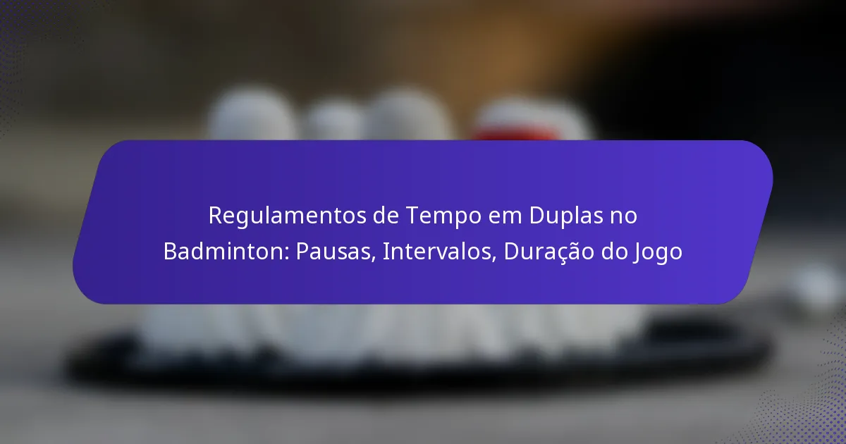 O badminton em pares apresenta regulamentos específicos sobre timeouts e intervalos para garantir um jogo justo e manter o fluxo da partida. Os jogadores podem utilizar um número limitado de timeouts para reagrupamento estratégico, enquanto os intervalos são estruturados para proporcionar o descanso necessário sem interromper o ritmo do jogo. A duração total da partida pode variar significativamente, normalmente durando entre 30 minutos e mais de uma hora, influenciada por fatores como sistemas de pontuação e níveis de habilidade dos jogadores.